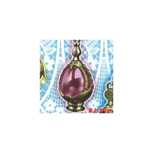 Officially licensed by Bandai, a total of 12 different Puella Magi Madoka Magica Soul Gem Straps were released (each sold separately) ~ five "image" aka "character" version Soul Gems (one for each of the main girls) containing carved plastic images of each girl inside, five "empty" or normal version Soul Gems (one for each of the main girls) with nothing inside, one black or "impure" version of Sayaka's Soul Gem and one Grief Seed. The Grief Seed and Black Soul Gem are considered rare because intentionally less were produced compared to the others in the assortment. The Soul Gem charm itself is made of plastic (PVC, ABS) and measures approximately 2.2" tall.